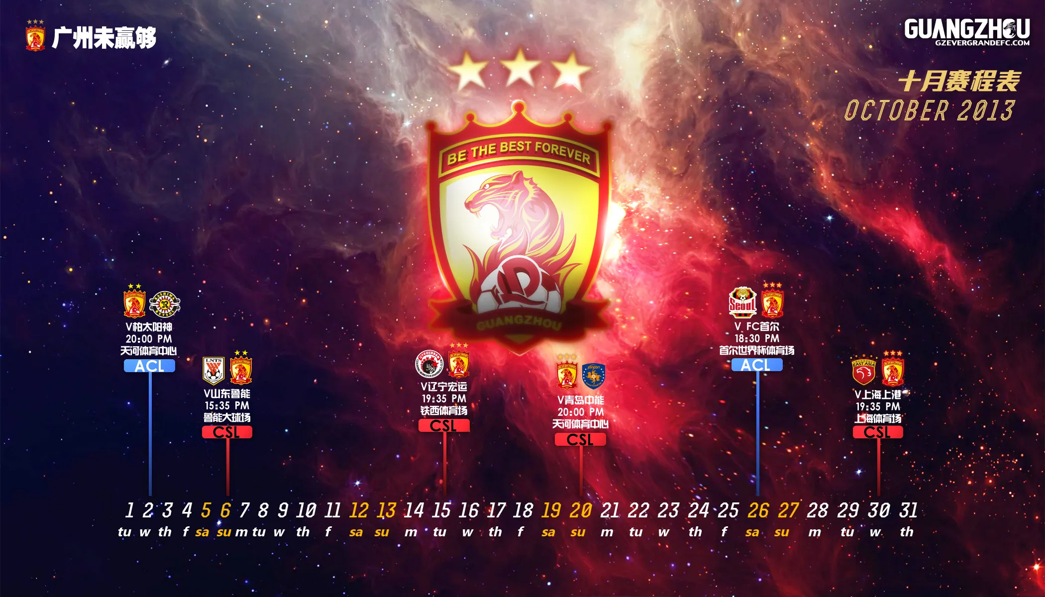 2013.10月赛程表